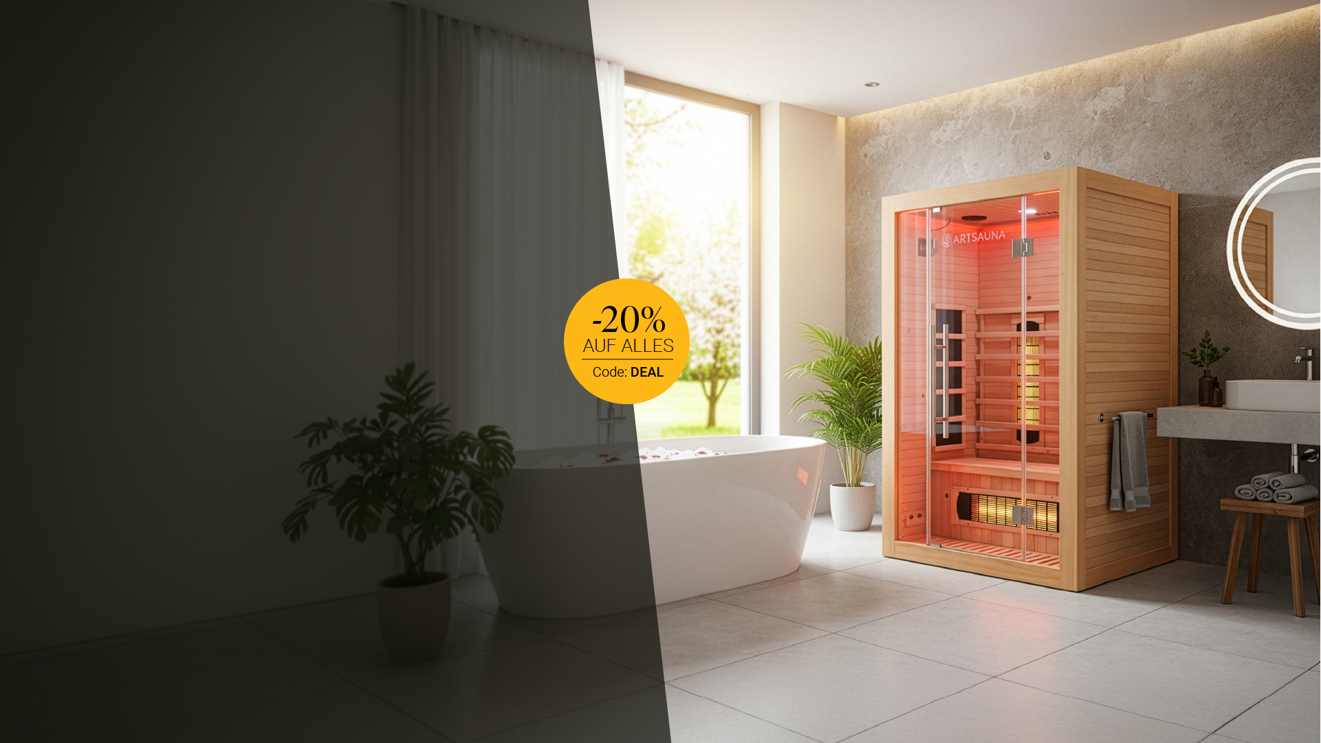 Ob traditionelle Sauna oder Infrarot Wärmekabine – bei Artsauna erhältst du deine Wunschkabine dauerhaft zu günstigen Preisen. Neben unseren fair kalkulierten Preisen bieten wir dir zusätzlich zahlreiche Rabattaktionen mit unseren Wochendeals. Also entscheide dich noch heute für eine Infrarot- oder Saunakabine von Artsauna und freu dich über das einmalige Preis-Leistungs-Verhältnis.