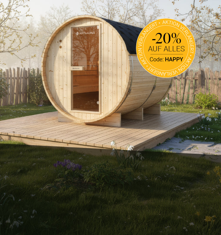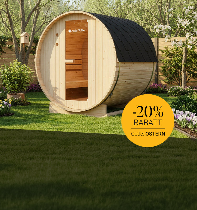 Artsauna bietet dir eine große Auswahl an Wärmekabinen und Saunen. Die stabilen Kabinen bestehen aus massiven Holzelementen aus langlebigem Hemlockholz. Infrarotstrahler bzw. ein Saunaofen vom Markenhersteller „Harvia“ garantieren ein intensives Wärmebad. Sitzbänke, Liegen, LED-Farblichttherapie, Ionisator oder HIFI-System sorgen für viel Komfort. Sollte an deiner Kabine mal etwas kaputtgehen, findest du in unserem Sauna Shop auch zahlreiche Ersatzteile und Zubehör. Wähle zwischen einer traditionellen Saunakabine und einer Infrarotsauna mit wahlweise Keramik-, Vollspektrum- oder Triplex-Heizsystem. Auch unsere Fasssaunen bieten dir pure Entspannung unter freiem Himmel – ideal für Gartenliebhaber, die das rustikale Saunaerlebnis schätzen. Bei Artsauna findest du die passende Outdoor-Fasssauna für bis zu 6 Personen.
