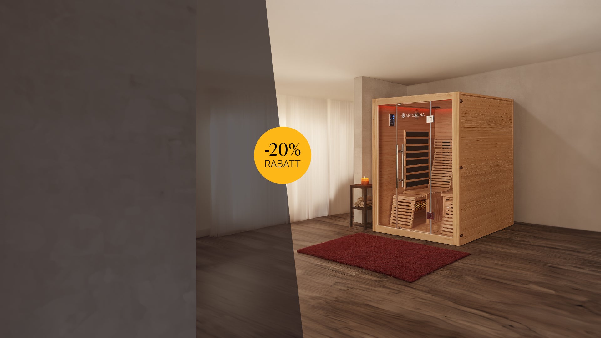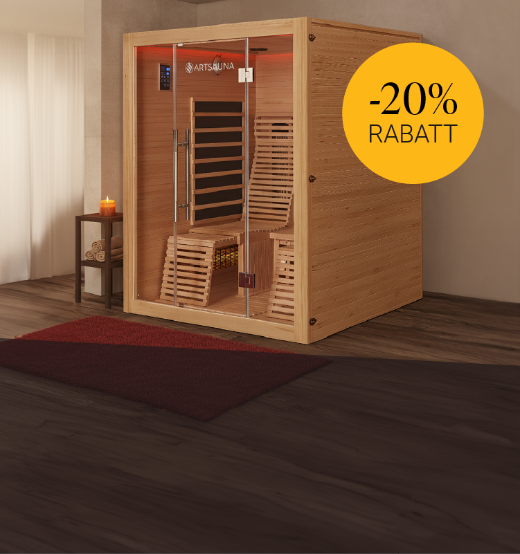 Ob traditionelle Sauna oder Infrarot Wärmekabine – bei Artsauna erhältst du deine Wunschkabine dauerhaft zu günstigen Preisen. Neben unseren fair kalkulierten Preisen bieten wir dir zusätzlich zahlreiche Rabattaktionen mit unseren Wochendeals. Also entscheide dich noch heute für eine Infrarot- oder Saunakabine von Artsauna und freu dich über das einmalige Preis-Leistungs-Verhältnis.